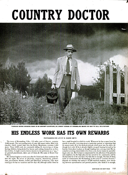 For 23 days, Smith traveled with Dr. Ernest Ceriani, the lone physician serving a 400 square mile area of Colorado, capturing his travel, house calls, tending to patients from birth to near death and a moment of recreational fishing to rest.