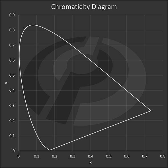 So the XYZ values allow us to relate all color – no matter how its made – back to human vision, and the chromaticity diagram flattens these values down to a plane that ignores luminance and tells us only about the color itself. But neither of these values accurately describes what a color actually looks like, they can only tell us if two colors match, hence ‘color matching functions.’
