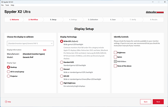 | Never ignore the «Display Technology» panel. It corrects for imperfections in your colorimeter’s measurements, ensuring accurate calibration. |