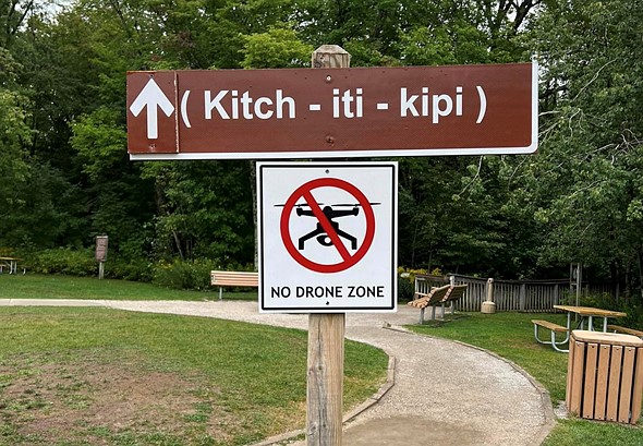 As mentioned earlier, the temperature of Kitch-iti-kipi won’t dip below 7ºC (45º Fahrenheit) and it’s 40 feet deep. Hypothetically, if a drone falls in, it’s possible to retrieve it without causing any damage to the spring. The ‘No Drone Zone’ sign at this state park simply means the rangers don’t want to risk people flying drones over the lake, even if it’s legally unenforceable.
