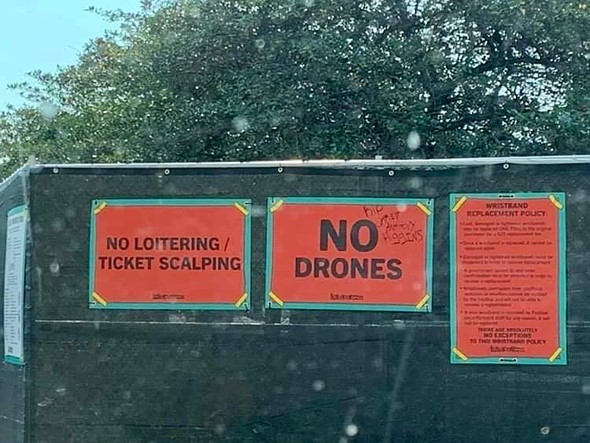 | LiveNation does not have the authority to use the FAA’s logo on their ‘No Drone Zone’ signage. Photo: Antoine Tissier |
